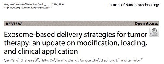 近日,中南大学湘雅二医院耳鼻咽喉头颈外科中心耳鼻咽喉头颈肿瘤研究室团队在生物工程顶级期刊《Journal of Nanobiotechnology》(2023 IF=10.2)在线发表了题为“Exosome-based Delivery Strategies for Tumor Therapy: An Update on Modification, Loading, and Clinical Application”的综述文章,论文第一作者及通讯作者单位均为中南大学湘雅二医院,团队李仕晟副教授为通讯作者,2021级硕士研究生杨倩为第一作者。
