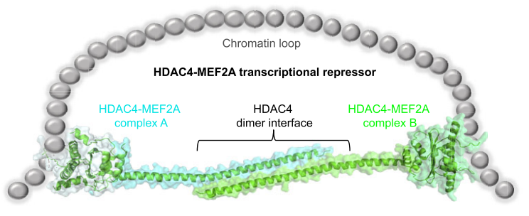 近日,国家卫健委肿瘤蛋白质组学重点实验室/抗癌药物国家地方联合工程实验室陈永恒教授团队和美国南加州大学生物/化学系陈林教授团队合作,在国际权威学术期刊Nucleic Acids Research(IF: 14.9)上发表了题为“Structural insights into the HDAC4-MEF2A-DNA complex and its implication in long-range transcriptional regulation”的研究论文。该研究首次报道了HDAC4-MEF2A-DNA转录抑制复合物的晶体结构,并揭示了HDAC4介导的远程基因调控的分子机制。该研究成果不仅为HDAC4-MEF2A-DNA复合物的组装提供了结构基础,而且还揭示了HDAC4介导的远程基因调控的分子机制。