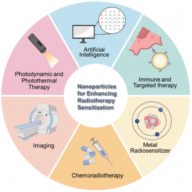 该研究不仅聚焦于纳米颗粒作为放射增敏剂的直接效用,还深入探讨了其与化疗、免疫及靶向治疗药物的协同作用,并且展示了纳米颗粒在结合光动力/光热治疗、成像、人工智能等技术结合方面的广泛适应性。研究结果表明,纳米颗粒不仅能优化肿瘤局部的辐射剂量以提升治疗效率,更能在治疗过程中有效保护周边健康组织。这一发现充分展现了纳米颗粒在放射治疗领域的创新性应用及其潜力。