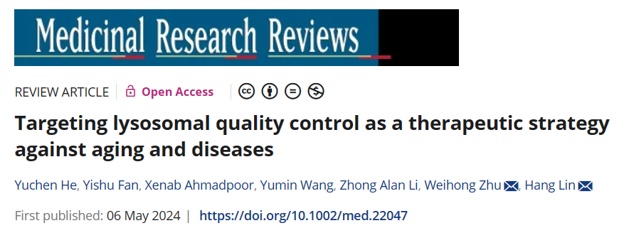 近日,中南大学湘雅二医院骨科运动医学亚专科朱威宏教授团队在Medicinal Research Reviews杂志(IF=13.3)在线发表了题为“Targeting lysosomal quality control as a therapeutic strategy against aging and diseases”的综述。