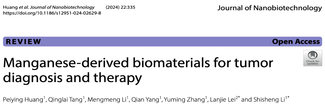 李仕晟团队最新综述:全面阐述锰衍生生物材料在肿瘤诊断与治疗中的应用