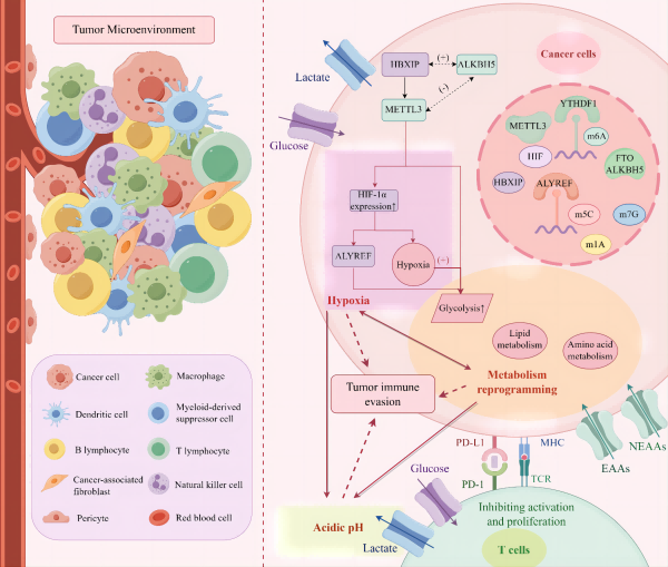 本研究主要探讨了RNA甲基化在肿瘤免疫中的作用及其对免疫治疗的潜在影响。研究中提到的主要RNA甲基化类型包括N6-甲基腺苷(m6A)、5-甲基胞嘧啶(m5C)、N1-甲基腺苷(m1A)、N7-甲基鸟苷(m7G)和3-甲基胞嘧啶(m3C)。通过分析这些甲基化类型如何通过“writer”、“eraser”和“reader”影响RNA的翻译和稳定性,从而揭示了RNA甲基化在调节肿瘤微环境中的免疫细胞和免疫因子失调中的关键作用。此外,研究还探讨了RNA甲基化如何调节肿瘤的增殖、侵袭和转移等恶性生物行为,并分析了其在肿瘤免疫逃逸中的作用机制。通过深入探讨RNA甲基化如何介导肿瘤免疫逃逸,该综述不仅增进了我们对肿瘤免疫机制的理解,还为开发新的免疫治疗策略提供了理论基础和潜在的治疗靶点。上述发现对于提高肿瘤免疫治疗的效果具有重要的科学意义和临床应用价值,为未来的肿瘤治疗提供了新的思路和方法。