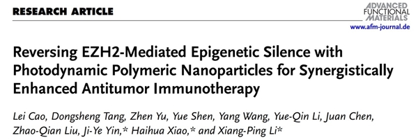 近日,中南大学湘雅医院药学部李湘平教授和临床药理研究所尹继业研究员团队在国际著名期刊《Advanced Functional Materials》(中科院1区,IF:19.0)发表原创学术论文“Reversing EZH2-Mediated Epigenetic Silence with Photodynamic Polymeric Nanoparticles for Synergistically Enhanced Antitumor Immunotherapy”(“光动力聚合物纳米粒通过逆转EZH2介导的表观遗传沉默协同增强抗肿瘤免疫疗法”)”。该研究构建了一种具有ROS响应性和良好近红外吸收系数的纳米粒,可通过PDT激活和表观遗传重编程重塑小鼠原位乳腺癌模型的肿瘤免疫微环境,在体内诱发强烈的抗肿瘤免疫反应。