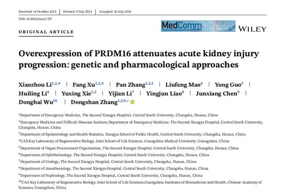 张东山团队在国际高水平期刊发表“PRDM16过表达可减轻急性肾损伤进展:遗传学和药理学方法”