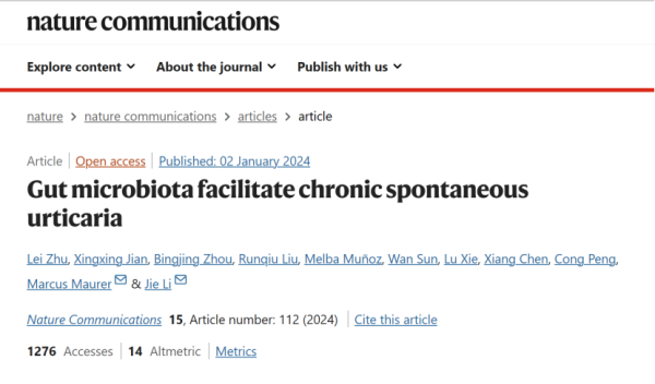 李捷团队在国际顶刊连续发表慢性荨麻疹和特应性皮炎高水平论文