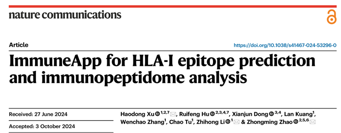 近日,中南大学湘雅二医院骨科、肿瘤模型与个体化诊治研究湖南省重点实验室、人工智能诊疗装备湖南省工程研究中心黎志宏教授、许浩东教授团队在人工智能技术和免疫组学交叉研究方面取得新进展,研究成果(ImmuneApp for HLA-I epitope prediction and immunopeptidome analysis)在国际权威学术期刊 《自然通讯》(Nature Communications)(IF:14.7)发表。