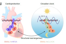 本研究旨在阐明心肌缺血损伤的昼夜节律性机制,首次发现昼夜节律核心转录因子BMAL1与缺氧诱导因子HIF2A在缺血心肌中形成异源二聚体,揭示了“生物钟–缺氧信号”之间的关键互作机制,明确其为心肌损伤昼夜节律差异的分子基础。该发现为基于生物钟的缺血性心脏病精准治疗提供了重要理论基础,并可拓展应用于脑卒中、代谢综合征、肿瘤等具有昼夜节律特征的疾病,为时间医学的临床转化开辟了新路径。
