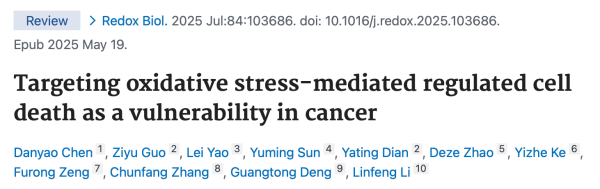 近日,中南大学湘雅医院张春芳教授团队在《Redox Biology》(《氧化还原生物学》)(IF:11.25)上发表题为“Targeting oxidative stress-mediated regulated cell death as a vulnerability in cancer”(《靶向氧化应激介导的肿瘤细胞调节性死亡》)的综述论文。