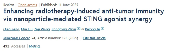 近日,中南大学湘雅医院肿瘤科周蓉蓉教授团队、中南大学湘雅药学院艾可龙教授团队围绕放疗与STING激动剂的协同抗肿瘤作用,在《Molecular Cancer(分子癌症)》(IF=33.9,中科院1区TOP期刊)发表题为“Enhancing radiotherapy-induced anti-tumor immunity via nanoparticle-mediated STING agonist synergy”(纳米STING激动剂协同放疗增强抗肿瘤免疫)的重要综述。