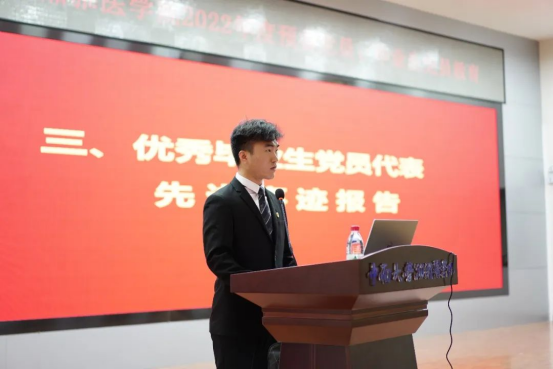 大家上午好!我是来自湘雅医学院1702党支部的李治,非常荣幸能够作为2022届毕业生党员代表在这里发言。