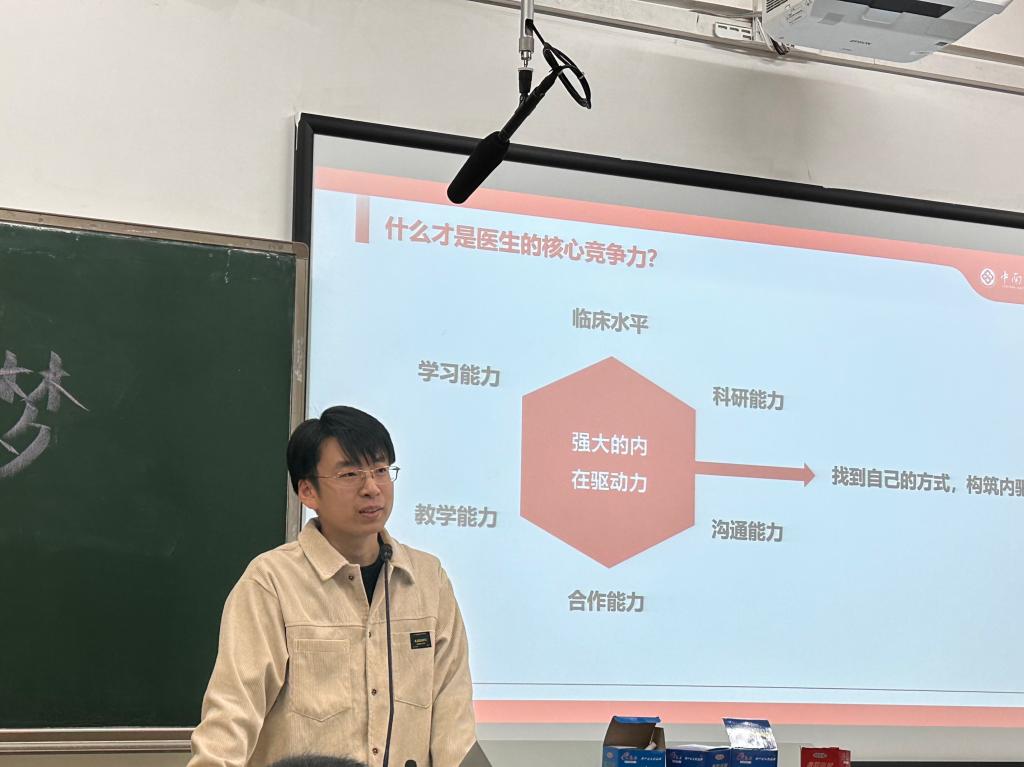 梁本辉学长针对医生的专业特性,从临床能力、科研能力、沟通能力、合作能力、教学能力和学习能力六个方面剖析了同学们所关心的未来竞争力。经验丰富的梁本辉学长客观地分析了这六个能力对于医生的重要性,最后提出“强大的内在驱动力才是医生的核心竞争力”的观点,鼓励大家探索构筑内驱力的方法,提升自我竞争力。
