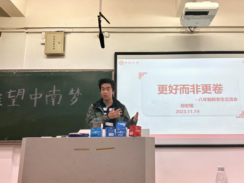 2023年11月19日下午4:00,湘雅医学院临床医学(八年制)新老生交流会在新校区A座201教室圆满举行。本次新老生交流会由李悦同学主持,由临床医学(八年制)2016级梁本辉、2020级胡宏锟、2020级张博彦和2022级陈钰彬为2023级全体新生分享学习生活经验,辅导员曾德露老师出席本次新老生交流会。