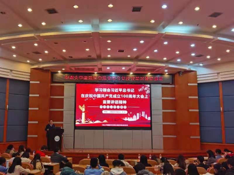 2021年11月9日晚,湘雅医学院党委书记常实在湘雅新校区福庆楼三楼报告厅以“学习领会习近平总书记在庆祝中国共产党成立100周年大会上重要讲话精神”为题讲授专题党课,150余名第十三期发展对象参加此次党课学习。