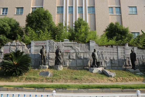 昔日文化墙处杂草重生,四位大先生的铜像色彩斑驳,浮雕上校门及石碑上院训的字迹掉落。改造之后的文化墙焕然一新,成为校园里一道靓丽的风景。