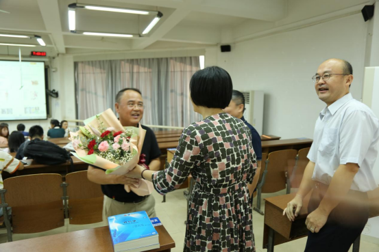 9月10日7:45,谈球吧党委委员、副院长吴晓创、丁建农、陈俊香代表湘雅医学院全体领导班子,走访福庆楼教室,向正在辛勤备课的老师献上鲜花,送上诚挚的节日祝福。