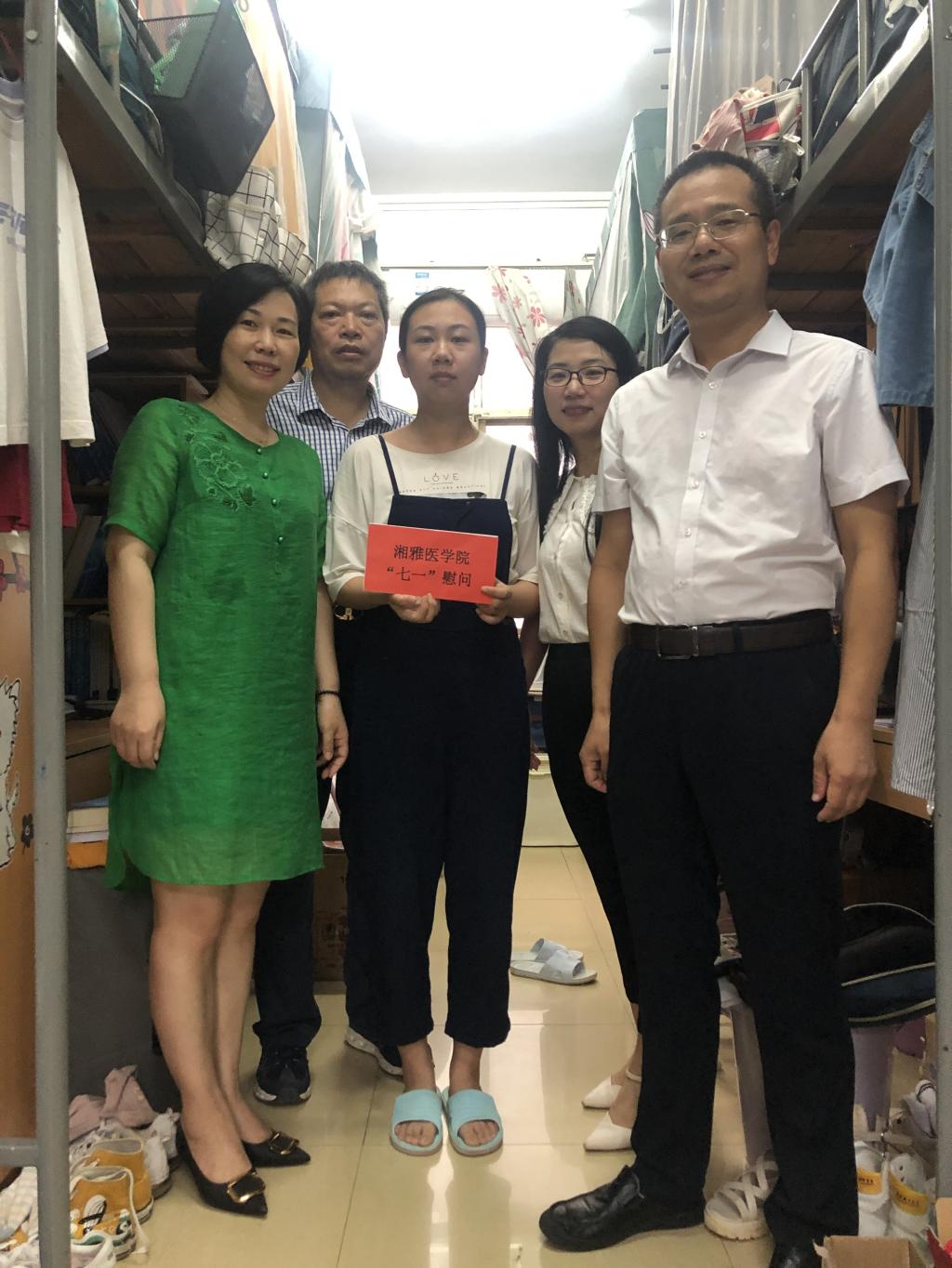 会后,湘雅医学院领导班子分成三组前往三个校区探望10位困难学生党员。领导们在学生宿舍对困难学生们进行亲切慰问,颁发慰问津贴的同时,对学生的学习、生活情况进行细致了解和关心。学生们纷纷表达对党组织的感谢,并表示会克服困难,勤奋学习、努力成才。