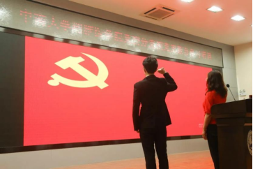 接着,举行预备党员入党宣誓仪式,正式党员重温入党誓词,党员代表袁雨童同志领誓。