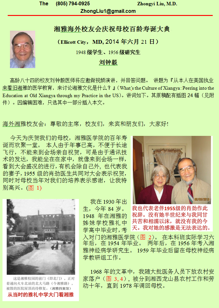 湘雅海外校友会庆祝母校百龄寿诞大典