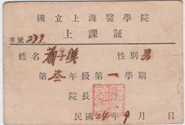 图7,1935年9月颜福庆签发给萧子溪的听课证