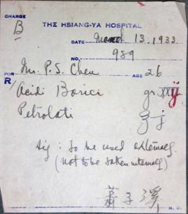 图6,1933年6月13日萧子溪在湘雅医院开出的处方