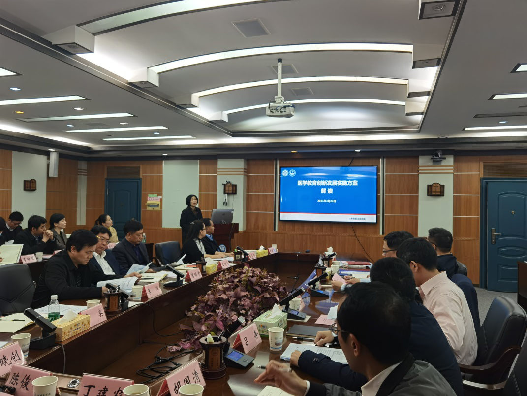 会上,湘雅医学院副院长陈俊香首先就《中南大学关于加快医学教育创新发展的实施方案》进行解读,希望有关部门、二级学院及附属医院能够认真学习并贯彻落实本次实施方案的具体要求,按照职责分工和时限要求,制定工作进度表和年度相关工作计划。之后,陈俊香副院长总结了湘雅医学院过去一年的医学教育工作和主要成果,并就本学年的重点工作安排情况进行了汇报。