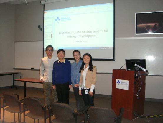 12月18日,三位中国留学生出现在渥太华大学学术讲坛上,来自中南大学的湘雅8年制学生陈文航、刘煜婕、李柳以流利的英语分别做了题为《孕期叶酸摄取对胎盘发育的影响》、《母亲叶酸水平对子代肥胖和胰岛素抵抗的影响》、《母亲叶酸水平与胎儿生长发育的关系》的学术报告,报告内容精彩丰富,具有较高学术水平,受到与会国外专家的一致赞扬。