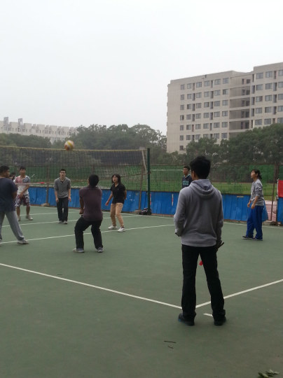 面对每一段新生活,人们总是充满了激情与动力。夜间的排球训练,队员们总能积极地投身于训练之中。可刚开始时,我队虽有力却乏技,如何从基础练习完美上升到对战配合成为了我们队亟待解决的问题。这是一个复杂的问题,它慢慢地消耗着每一个人的耐心。随着例练一天天的继续,强度一点点的增加,时间一点点的拉长,队员们从未抱怨过劳苦,仍始终坚持着每天准时赴练。途中有过烈风的侵袭,微雨的夜访,但队员们却从不言停训。雨滴打在发梢上,戴上连衣帽;烈风吹起衣摆边,拉紧衣领;积水阻碍训练,移训铁棚中……经历过风吹雨打后的队员们感情愈加浓厚,技术愈加娴熟,信心也愈发饱满!呐喊出一声“加油”,我们向比赛迈出了最有力的一步。
