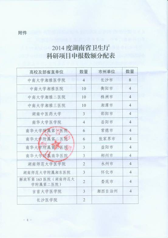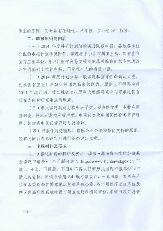 湖南省卫生厅关于申报2014年度科研计划课题的通知