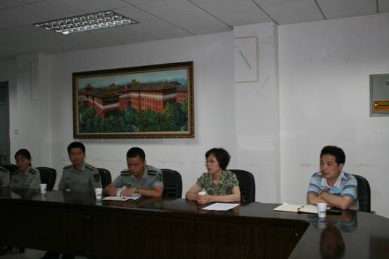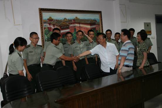 2013年7月8日上午10∶30,湘雅医学院欢送2008级毕业国防生座谈会在学院八楼三会议室举行。会议由党委副书记赵永正主持,校党委副书记、湘雅医学院院长陶立坚教授,院党委书记张步新,常务副院长孙维佳,2008年级办主任汤志斌老师参加了会议。2008年级全体国防生们怀着对母校的恋恋不舍、对老师们辛勤教育的感激和同窗五年依依惜别之情参加了座谈会。