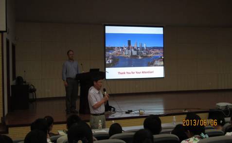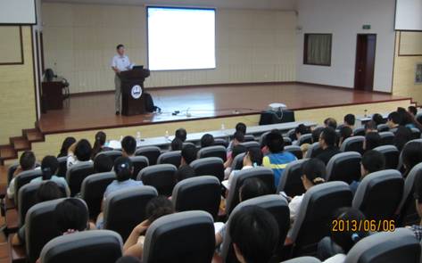 2013年6月6日下午4∶00,美国匹兹堡大学外科系终身系列唐道林教授,在湘雅医学院新校区图书馆一楼学术报告厅作学术报告。活动由基础医学院院长肖献忠教授主持,部分院领导、老师和相关院系的老师及100余名研究生参加了本次活动。