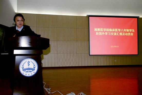 湘雅医学院临床医学八年制学生赴国外学习交流汇报及动员大会于2013年3月14日晚7点新校区图书馆报告厅隆重举行。