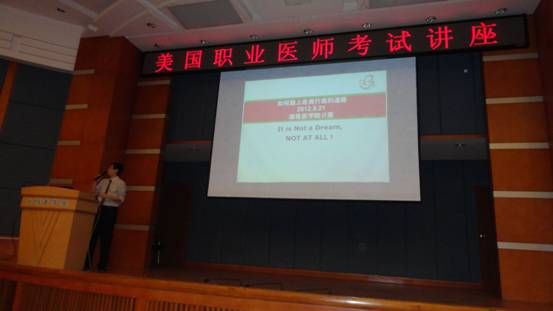 2012年9月21日晚18∶30,由湘雅医学院团工委主办,学生会学术交流中心和新闻宣传中心承办的“详解美国执业医师执照考试”专题讲座于湘雅医学院前栋教学楼四楼国际报告厅成功举办。