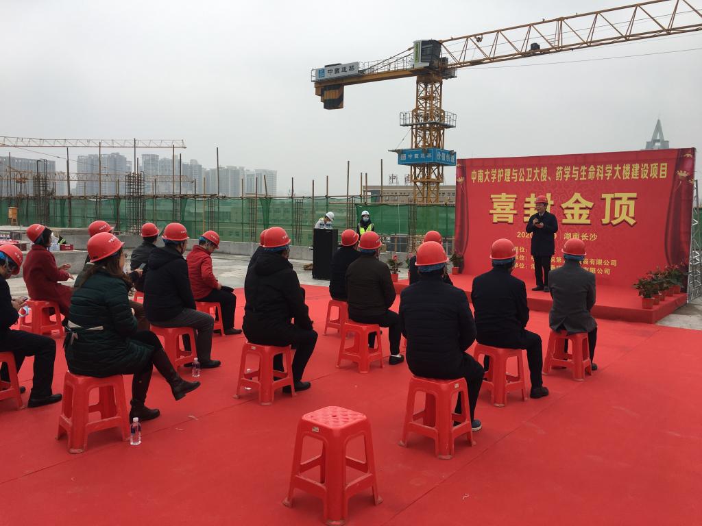 最后,陈立章副校长宣布中南大学护理与公卫、药学与生命科学大楼封顶。大楼的封顶,标志着“中南大学护理与公卫、药学与生命科学大楼”建设项目取得了阶段性胜利,为工程顺利完工奠定良好基础。