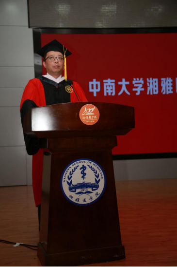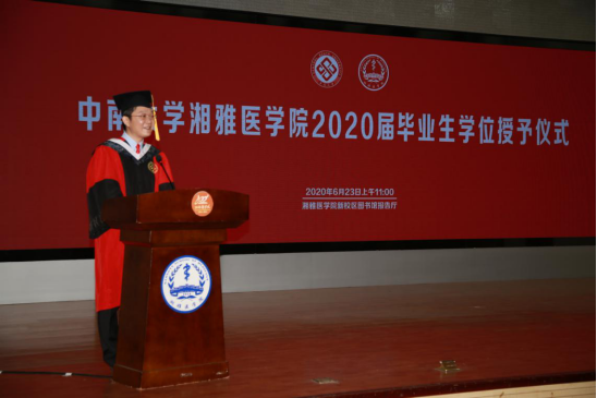 陈翔强调,毕业生们从这里出发,就将接过湘雅老师和前辈们的接力棒,书写湘雅新的故事。对于如何讲好湘雅新故事,他提出三点希望:一是有国际化思维,面对世界“百年未有之大变局”,要登高望远、潮头观澜,深度思考自己与医学、与国家、与世界、与时代的关系,将个人命运与国家民族命运紧密相连,让个人的成长与医学发展、国家战略、社会需求同频共振。二是牢守初心,人生之路与职业生涯都太漫长,要实践中南大学“知行合一、经世致用”校训,时刻牢记“除人类之病痛,助健康之完美”的誓言。三是传承湘雅精神,要传承“公勇勤慎、诚爱谦廉、求真求确、必邃必专”的湘雅精神,谨记张孝骞老校长“如临深渊、如履薄冰”的告诫。此次新冠肺炎疫情防控,广大湘雅人以实际行动践行了医学誓言,充分展示了崇高职业精神。