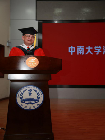 “同学们,作为学长,我从医30余年,深知从医之路艰辛而又漫长,无时不准备着与病魔较量,深知责任重大。希望同学们奔赴新前程,谨记张孝骞老院长‘如履薄冰、如临深渊’的教诲,践行‘公勇勤慎、诚爱谦廉,求真求确、必邃必专’的院训,传承湘雅‘抗疫’精神,做有理想、有本领、有担当的湘雅人,把自己辛勤的汗水洒在祖国的大地上。”教师代表、中南大学湘雅三医院院长张国刚寄语毕业生。