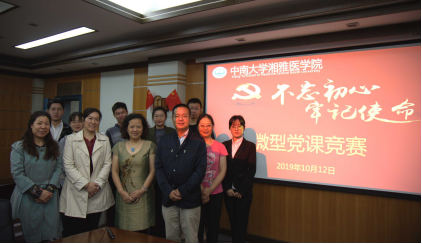 此次湘雅医学院“不忘初心、牢记使命”主题教育微型党课竞赛作为中南大学第二届微型党课竞赛活动的一次学院初赛,展示了各支部党员同志的良好精神风貌,加深了党员们对于“初心与使命”的感悟和理解,成为推进湘雅医学院在“不忘初心、牢记使命”主题教育中引导党员人人上讲台、个个讲党课的一个有力举措。