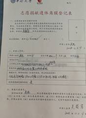 后来我们还采访了吴思的母亲。我们了解到在吴思在2017年的时候就在朋友圈发过自己登记遗体捐献的照片。她从进入医学院之后就开始有遗体捐献的想法,可能是与湘雅医学院遗体捐献的教育有关吧。这次她在2018年12月份就到湘雅医学院的形态楼领取了遗体捐献的志愿表并进行填写,她的母亲做委托人。而她早在2016年12月.26日就在器官捐献网站进行了登记。母亲在女儿捐献的全过程,她都是全力支持。