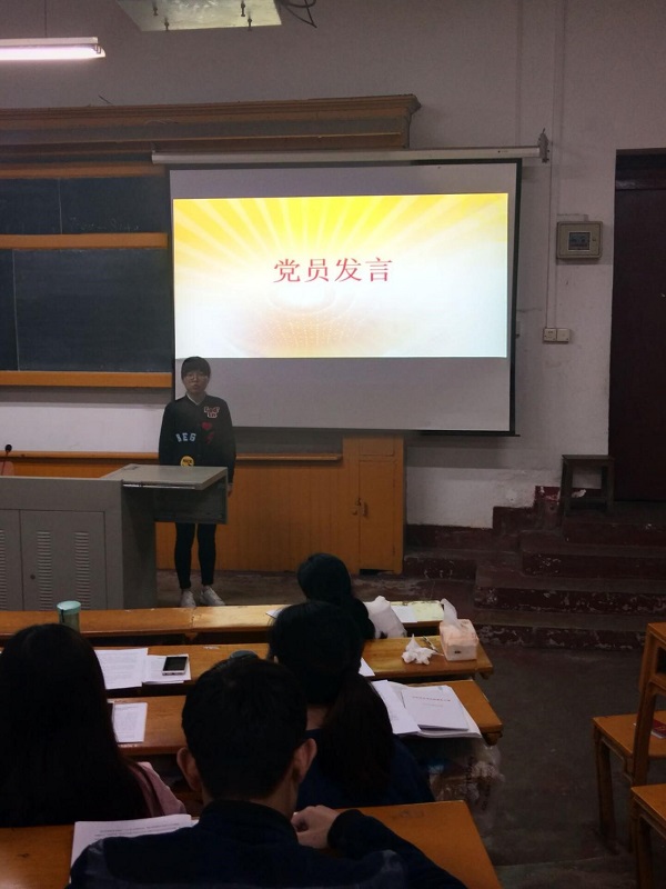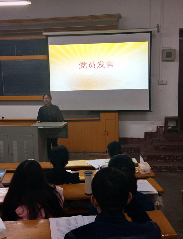 首先,支部书记王丹老师以“读析《习近平的十七年知青岁月》”为主题给大家上了一节生动的党课。通过选取习总书记知青时期的事迹和不同人群对他的评价,激励全体党员向习总书记学习,坚定理想,将这种艰苦奋斗的品质和求真务实的作风发扬到学习生活中。同时向支部党员们传达了院党委关全体党员认真学习十九大精神的要求,希望大家能够全面贯彻落实。