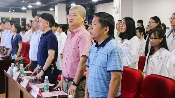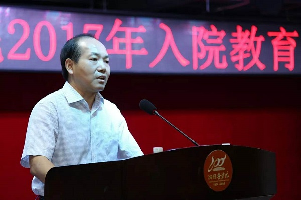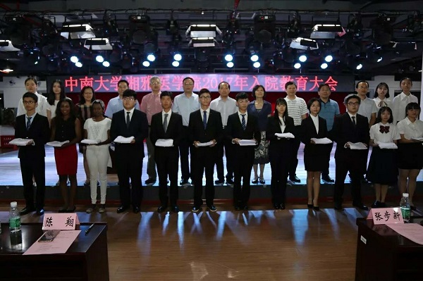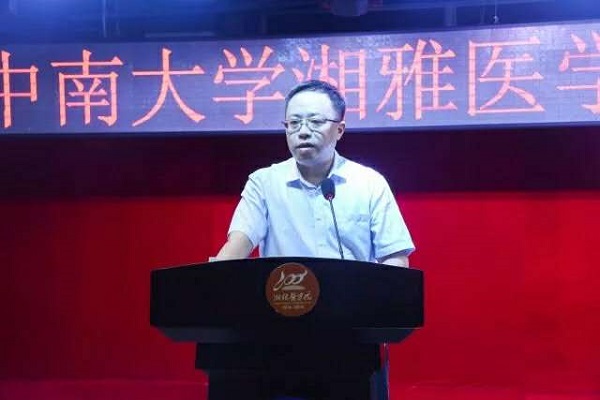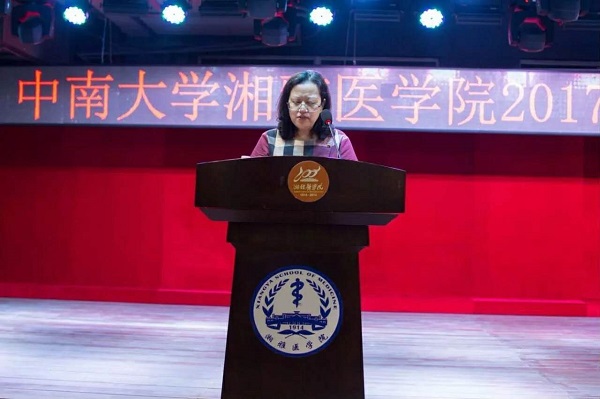 会议由湘雅医学院党委副书记丁红珊主持。会议中,陈翔副校长上台致辞,他对刚刚来到湘雅医学院的同学们表示了热烈的欢迎与深切的期待,医学生们进入医学殿堂,必须接受责任的重托,肩负生命的希望,不能愧于一身白衣。紧接着,陈副校长对同学们提出了三点要求:一是要有良好的职业道德,二是要不断学习、不断提问,打好医学基础,三是要紧跟学术前沿,关注新的理论成果,在多学科交叉融合中提升自我。他说,习总书记提出 “不忘初心,继续前进”,因此湘雅学子们要始终以“成为一名性命相托的医务工作者”为“初心”,以“公勇勤慎,诚爱谦廉;求真求确,必邃必专”的院训学风为“继续前进”的指导方针。最后,他希望同学们用努力与汗水孜孜不倦,砥砺前行,成就湘雅百年的新辉煌。