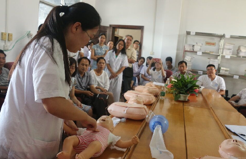 下午1点半,实践团来到大圩镇中心卫生院,在卫生院赵动高院长的安排下,给全镇18名村医进行急救知识宣讲,详细介绍并演示了常用止血方法、创伤急救包扎和心肺复苏,之后在队员们的指导下,村医们进行了技能操作练习。院团委书记屈湘南老师表示,通过本次宣讲会,村医们丰富的诊疗经验和队员们扎实的基础知识进行了一次充分的交流。