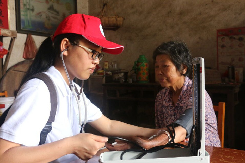 11点,实践团赶往大圩镇长山村入户送医送药,走进老人们的家中,给他们进行体格检查,并送去一些常用药品。老人们对队员们的到来都表示欢迎,并表示了感激。