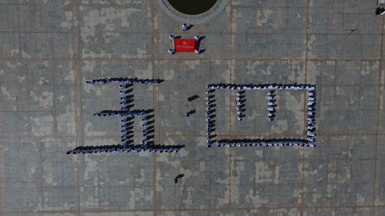 随后,医学生方阵从中心分为两个纵队向两侧移动,并且以队列的形式依次摆出了“五四”“青年”的字样,以特别的方式致敬“五四”,充分展现了医学生的青春风貌。随后,主持人宣布活动结束,所有参与活动的医学生前往校门台阶处进行合照。