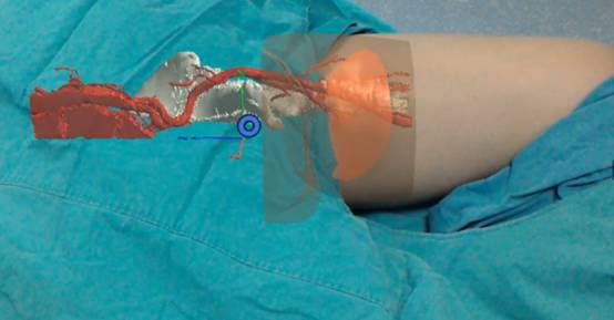 宋达疆博士刚师从世界显微修复重建学会主席Isao Koshima(光岛)教授学习半年归来,拓展和前瞻的思维一下就想到此例手术可以采用微软将公布近年来最前瞻的产品—名为HoloLens项目的头盔式全息计算设备。HoloLens是一个基于深度摄像头,高性能处理器和双屏幕显示的进阶版眼镜,CTA制作的3D图像转化输入此眼镜后,就可以将三维全息图像和现实影像重叠,从而做到实时指导手术的作用。