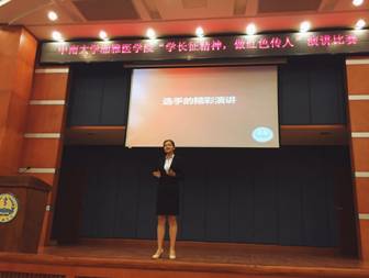 湘雅医学院于10月22日举办了演讲与征文比赛。比赛以“学长征精神,做红色传人”为主题,湘雅学子响应积极,纷纷报名参加。经过激烈角逐,其中主题演讲10人,征文比赛15人分别获得一、二、三等奖。通过此次活动,全院师生重温了长征路上的辉煌事迹,更加理解了长征精神的丰富内涵,提高了广大学子对长征的认识,弘扬长征精神将会成为湘雅学子永恒的使命。