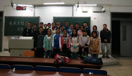 十一月上旬,湘雅医学院16级的二十二个班积极开展“传承长征魂、共筑中国梦”的主题班会活动,各班分别以演讲、朗诵、唱红歌、讲长征故事、战役情景再现等创新形式与内容进行交流与学习,在班会中,同学们重温中国共产党艰苦卓越的长征历程,进一步熟悉了长征精神,也坚定了医学新生努力学习、走好新长征路的决心。
