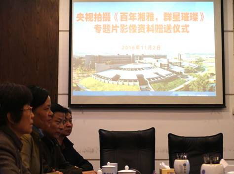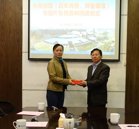 2016年11月2日,央视拍摄《百年湘雅﹒群星璀璨》专题片影像资料赠送仪式在学校举行,11集人物专题片影像资料进校档案馆收藏。
