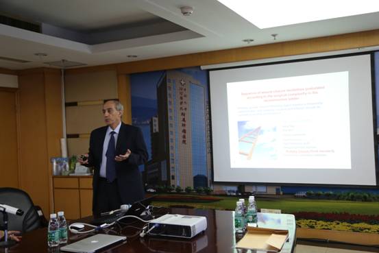 当日,莫瑞斯•托帕兹教授应邀为医院数十名专家进行了学术讲座,他重点讲解了利用氧负压和皮肤牵张技术闭合大面积软组织缺损创面的临床研究和应用案例。在这些案例中,通过使用皮肤牵张技术,解决了患者创口大,缝合难度大等问题。莫瑞斯•托帕兹教授讲解了利用氧负压和皮肤牵张技术,解决大面积创口感染问题,通过大量形象生动的图画将传统创面修复治疗与现今皮肤牵张技术(TopClosure)的治疗效果,以及患者创面恢复的不同呈现给大家。
