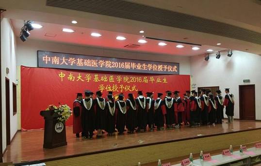 2016年6月22日下午3:00,基础医学院毕业生典礼暨毕业生学位授予仪式在中南大学湘雅新校区图书馆学术报告厅隆重举行。