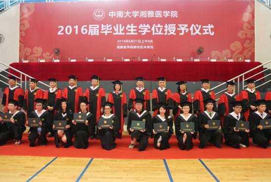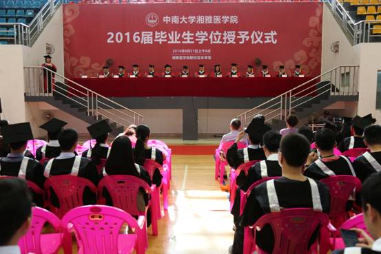 6月21日,谈球吧在湘雅校区体育馆隆重举行2016届毕业生学位授予仪式。中南大学党委常务副书记、湘雅医学院院长陶立坚,湘雅医学院全体院领导,基础医学院、附属医院及各系负责人参加学位授予仪式,湘雅医学院党委书记张步新主持仪式。