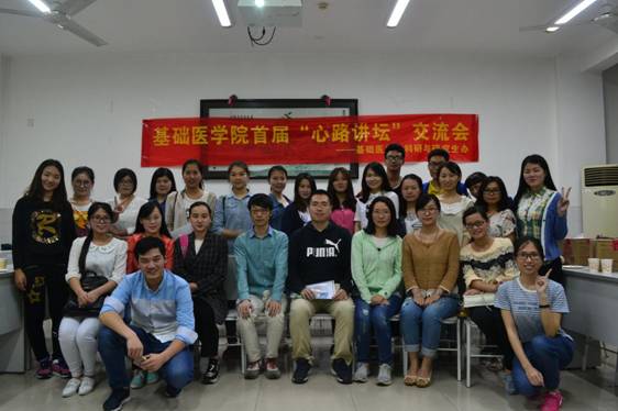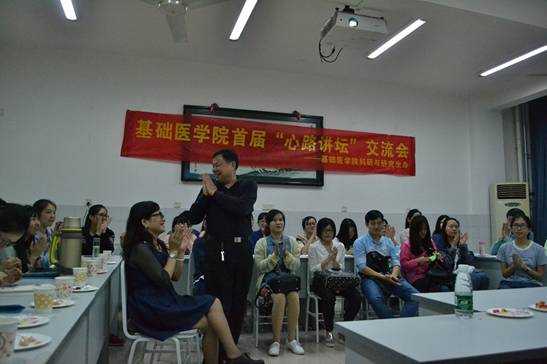 为了加强同学们与优秀研究生的交流与沟通,进一步向身边的榜样学习,2016年6月3日晚7:00,基础医学院首届“心路讲坛”交流会在新校区后栋研究生教室352顺利举行。基础医学院党委副书记汤志斌、部分老师及研究生出席了本次活动。